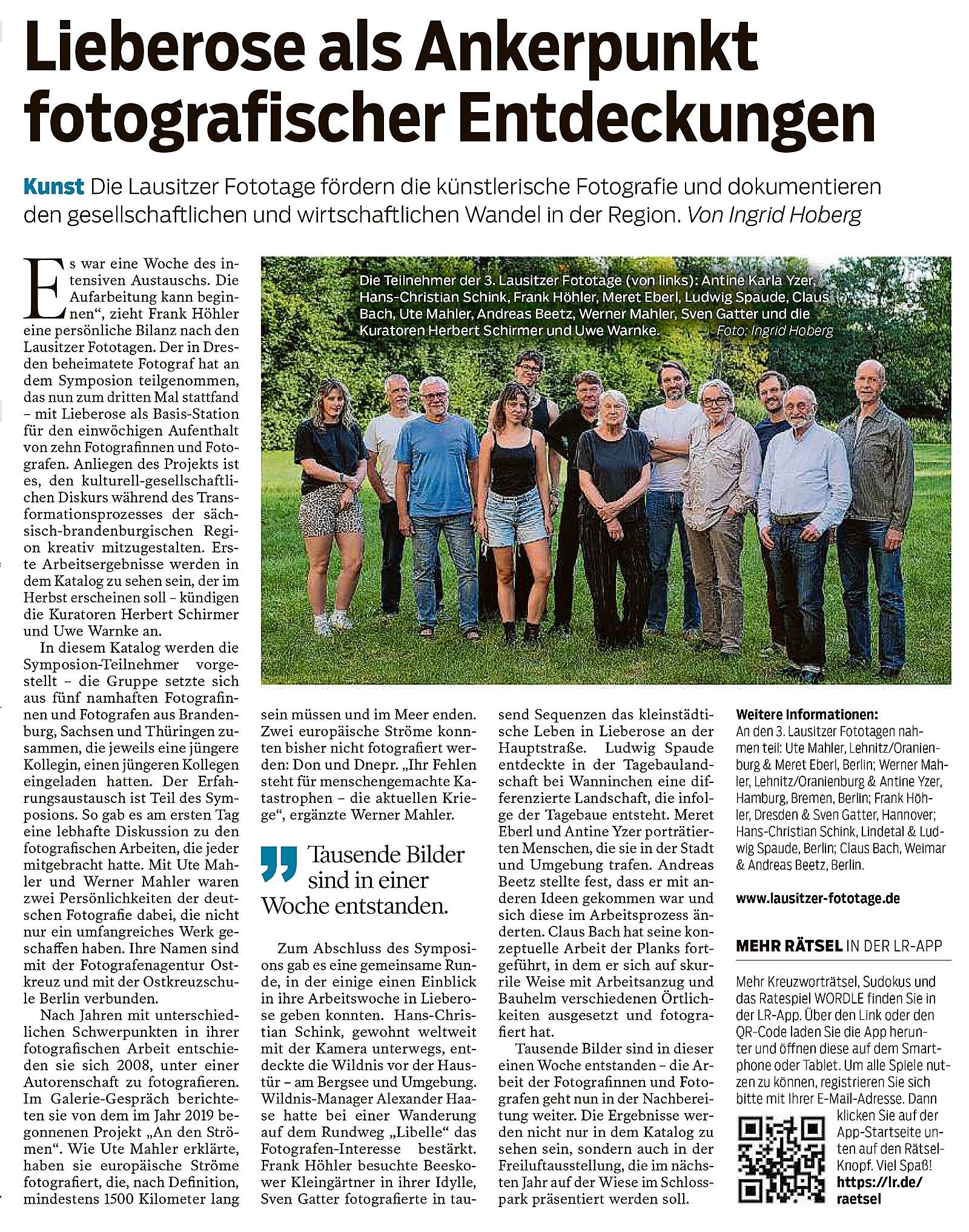 Lau­sit­zer Foto­ta­ge. Blick durchs Objek­tiv. Die 1. Lau­sit­zer Foto­ta­ge zei­gen die Regi­on im Wan­del. Zehn Foto­gra­fen kom­men für eine Woche nach Lie­be­ro­se, um gemein­sam zu arbeiten.